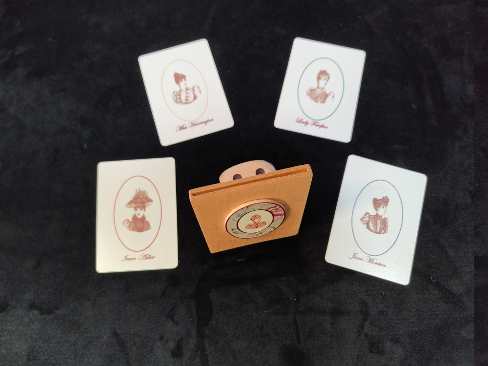 4 cartes représentant 4 femmes sont posées sur la table. Le spectateur en choisit une comme étant la complice de Moriarty.