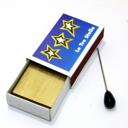 Vous présentez une boîte d'allumettes en carton et une grosse aiguille.